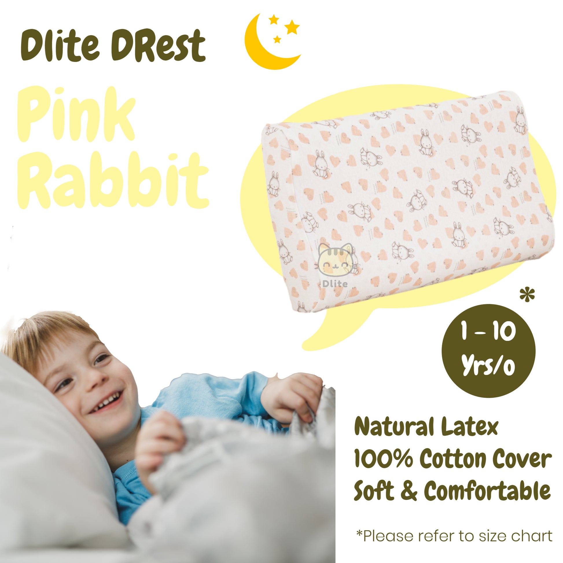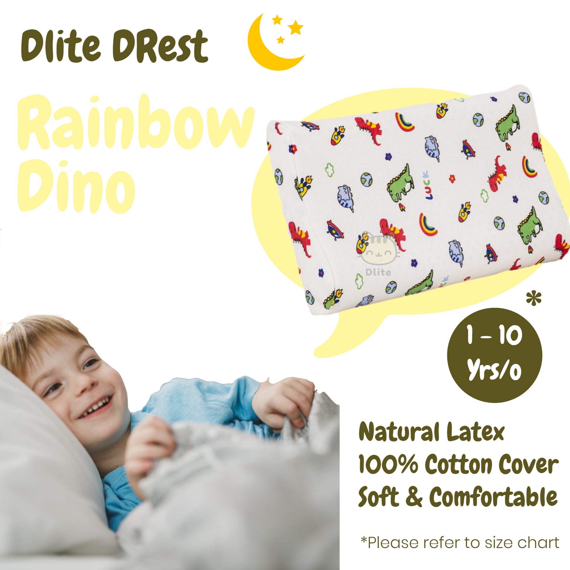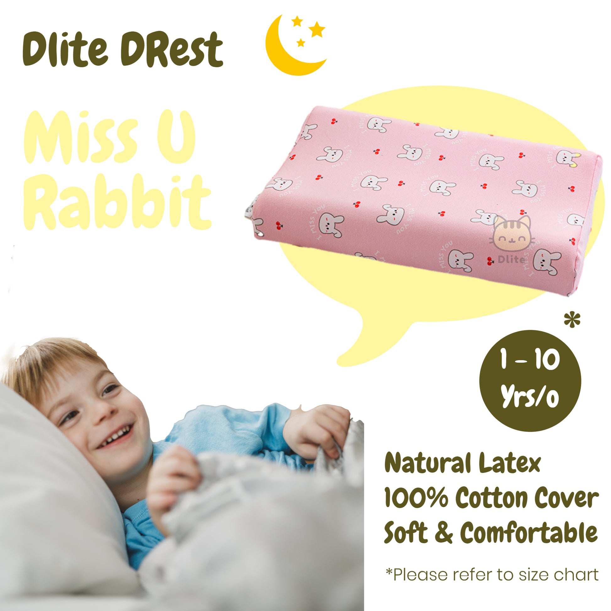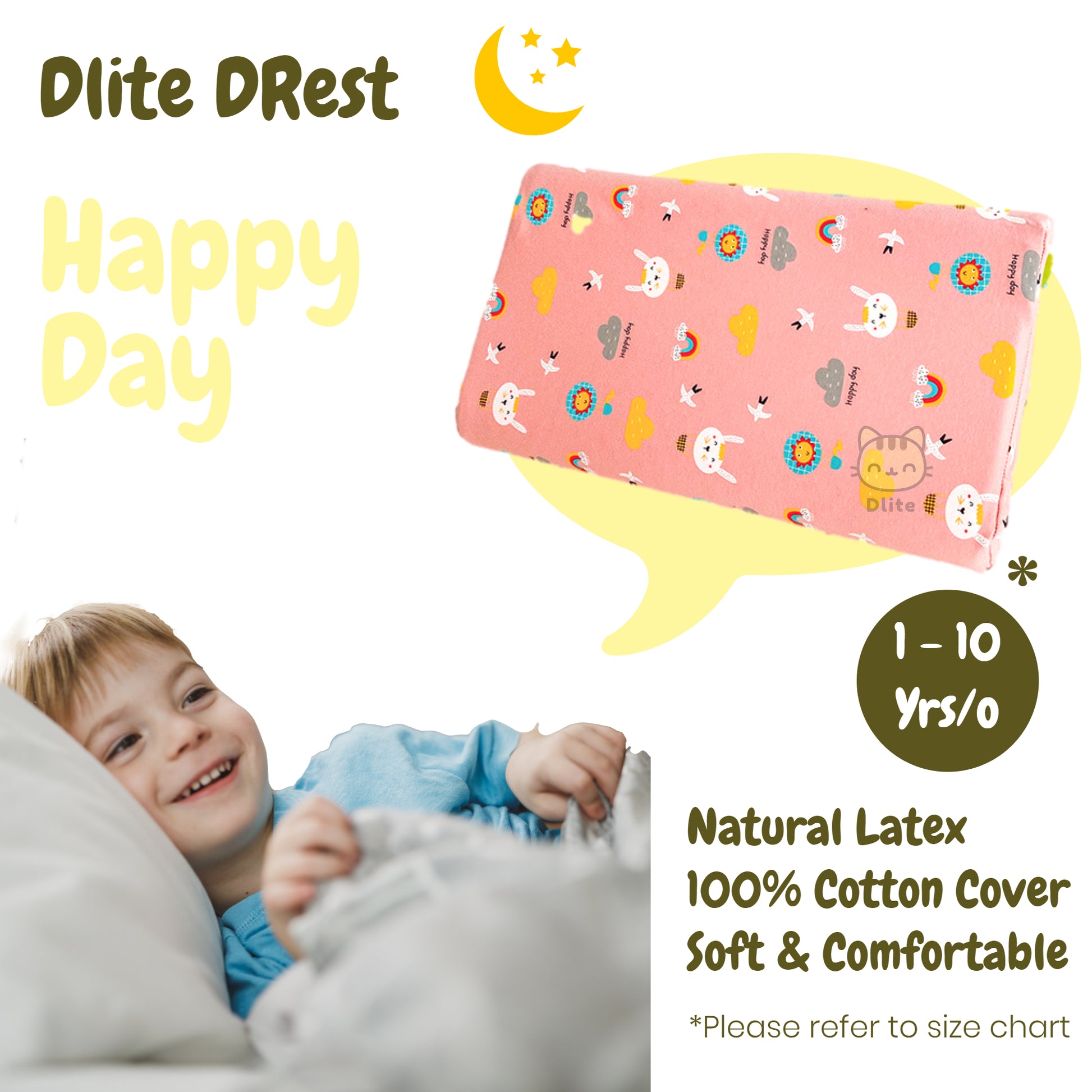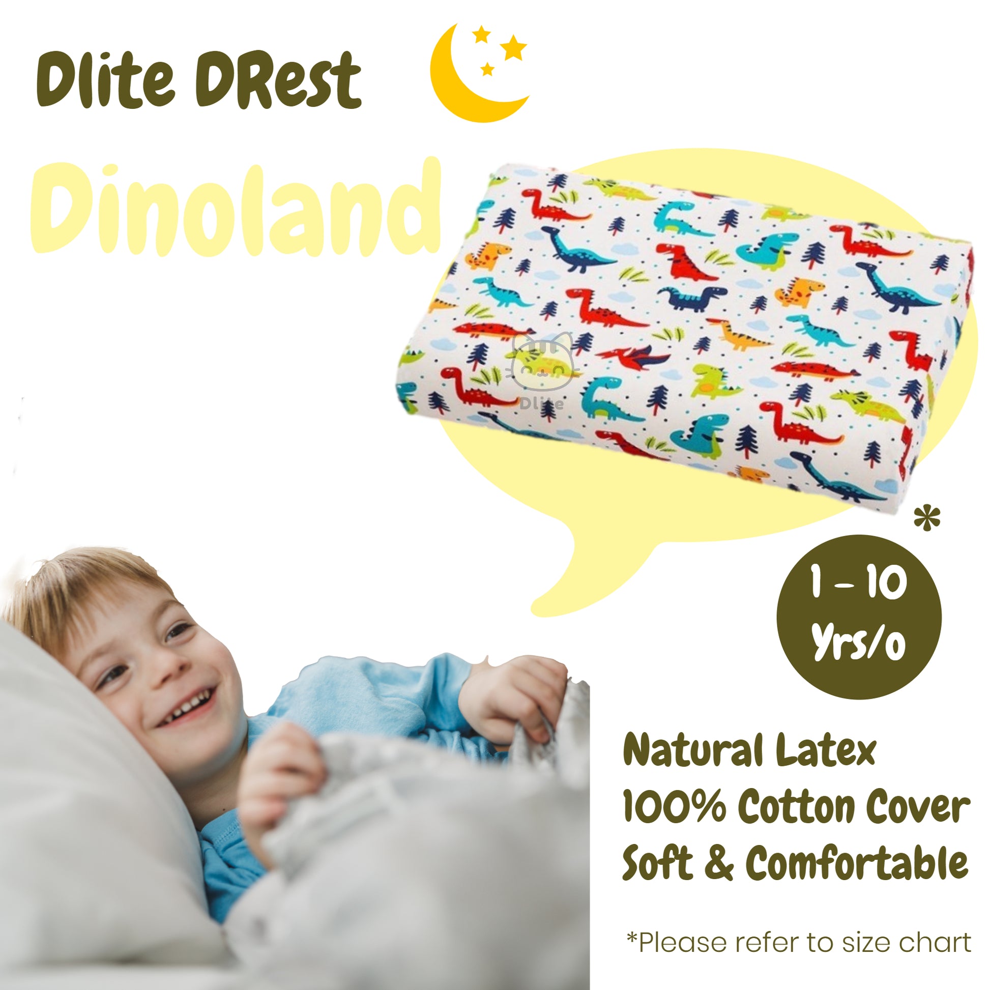 ✅ Dlite DRest Natural Latex Pillow 100% Cotton Pillowcase Kids Pillow 42*27*6cm SGS Compliant