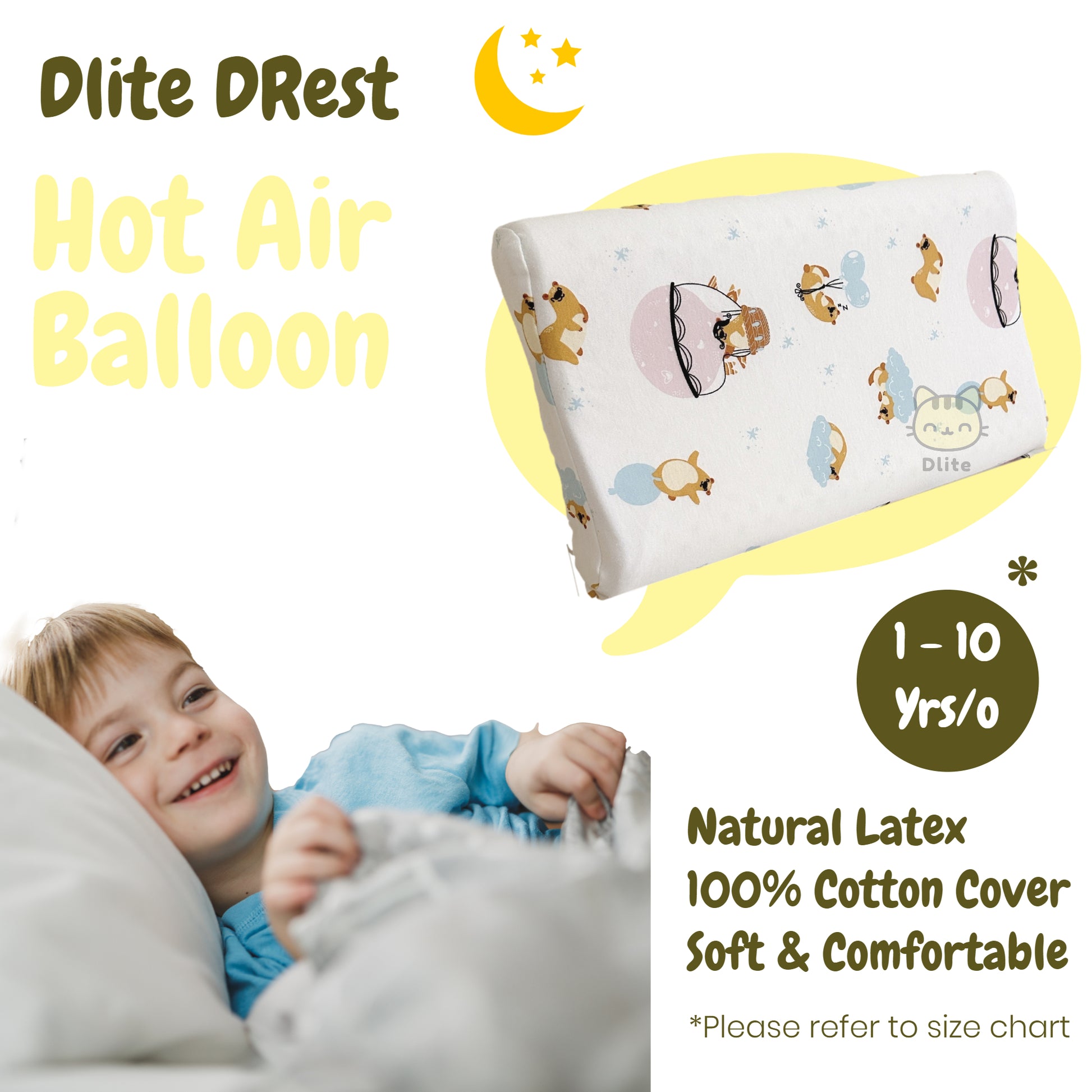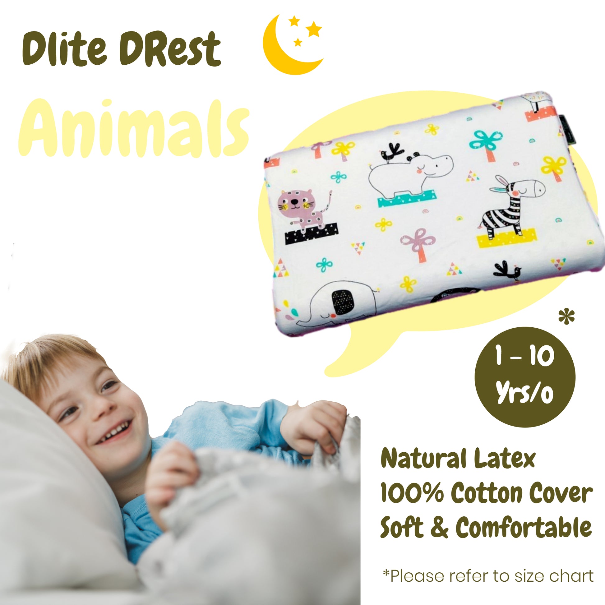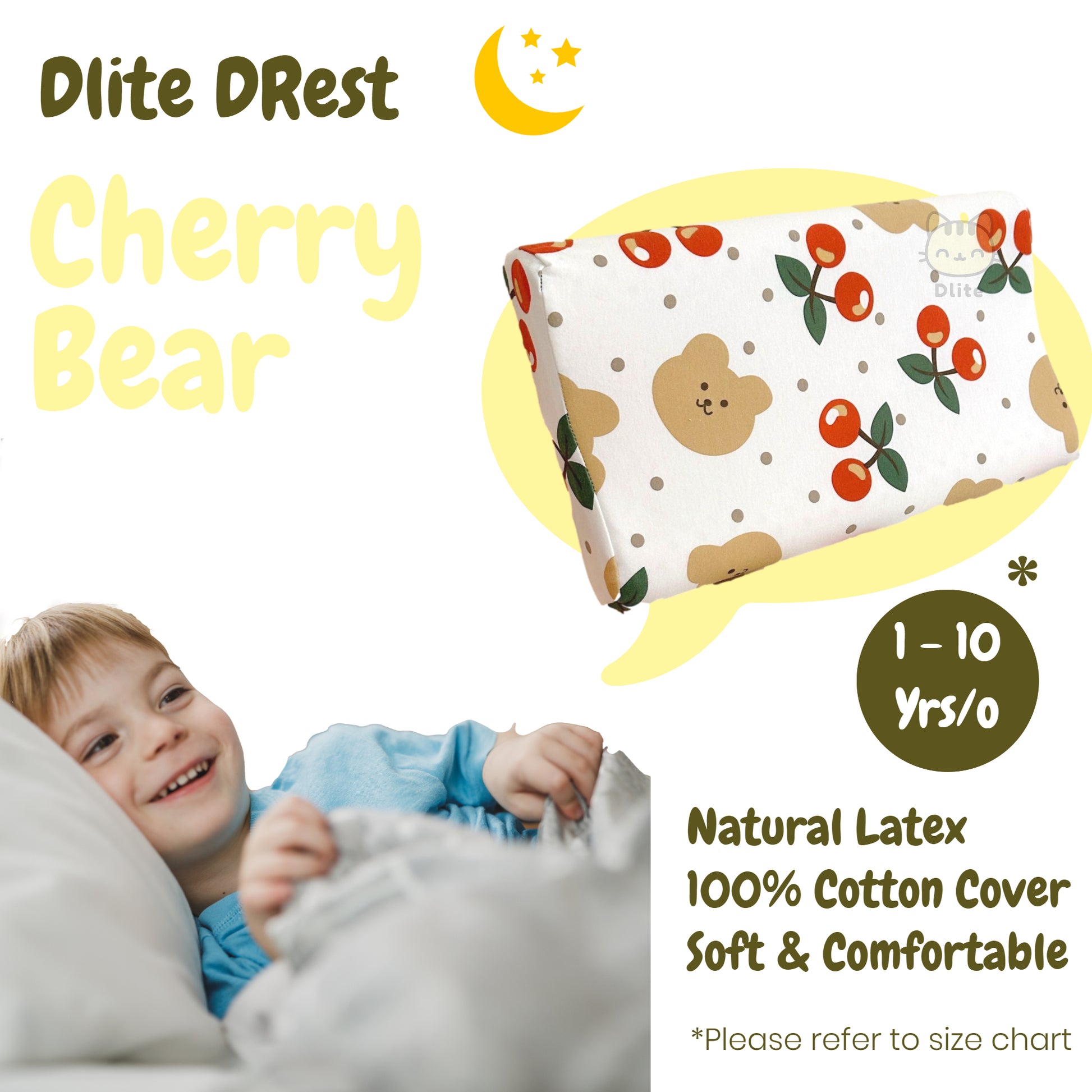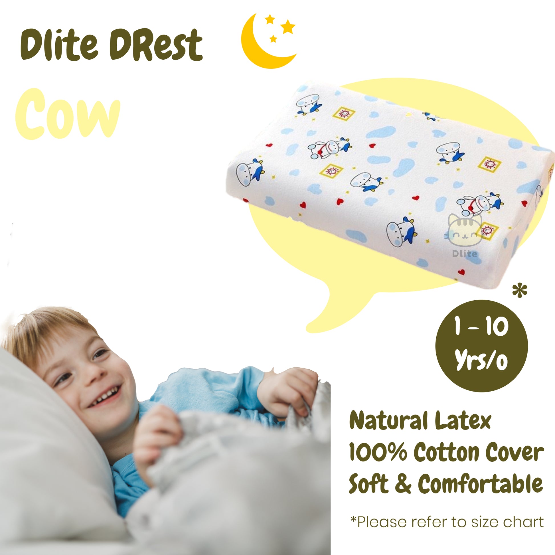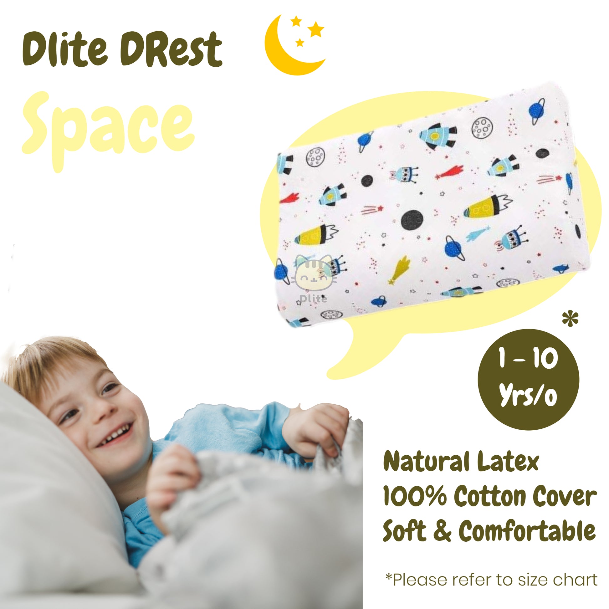 ✅ Dlite DRest Natural Latex Pillow 100% Cotton Pillowcase Kids Pillow 42*27*6cm SGS Compliant